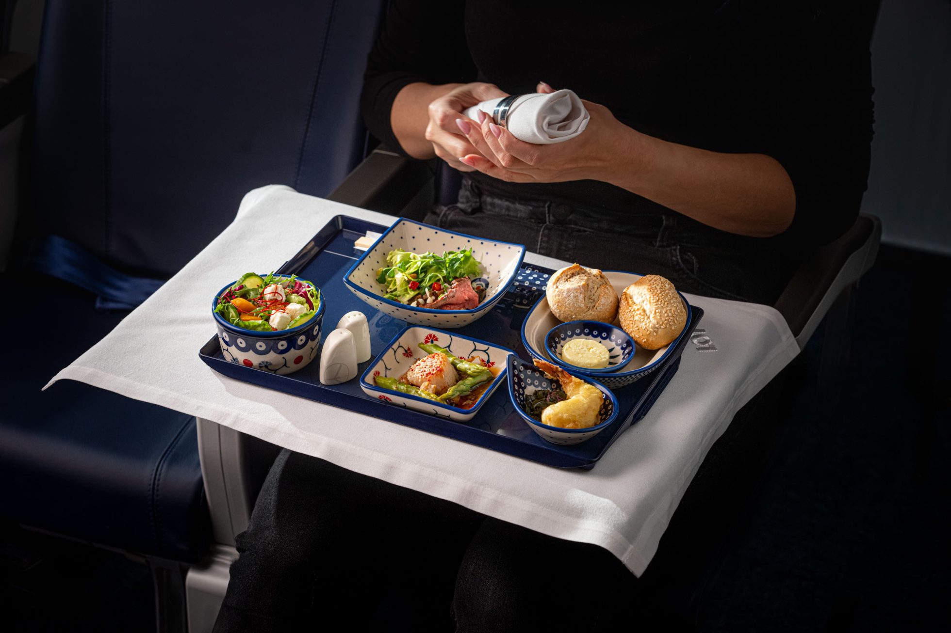 On flights to and from Tokyo, Far Eastern cuisine meets an icon of Polish design. Meals in LOT Business Class are served on tableware made of ceramics from the Manufaktura in Bolesławiec, which highlights the character of the dishes and adds a unique touch to the entire dining experience. It is a combination of tradition, craftsmanship, and a modern premium product.